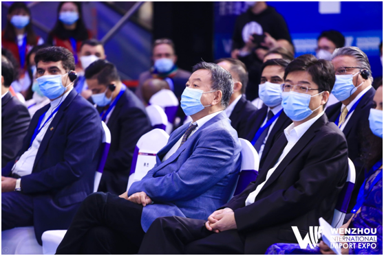 中國國際經(jīng)濟交流中心副理事長、中國商務(wù)部原副部長、中國貿(mào)促會原會長姜增偉,商務(wù)部國家高級智庫專家、商務(wù)部原流通發(fā)展司司長向欣,中國機械國際合作股份有限公司黨委書記、董事長夏聞迪,中國農(nóng)業(yè)農(nóng)村部農(nóng)業(yè)貿(mào)易促進中心副主任宋聚國,中國貿(mào)促會研究院副院長趙萍,中國市場學(xué)會副會長朱勇毅等中央部委和央企領(lǐng)導(dǎo);浙江省商務(wù)廳黨組副書記、副廳長、一級巡視員韓杰,溫州市人民政府市長姚高員,溫州市人大常委會主任葛益平,溫州市政協(xié)主席陳作榮,溫州市人民政府副市長殷志軍,溫州市人民政府秘書長陳俊等省、市領(lǐng)導(dǎo)出席了開幕儀式。